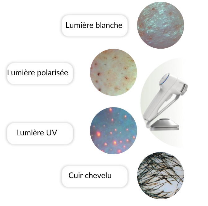 Distribution de la fluorescence jaune indiquant l’excès de sébum